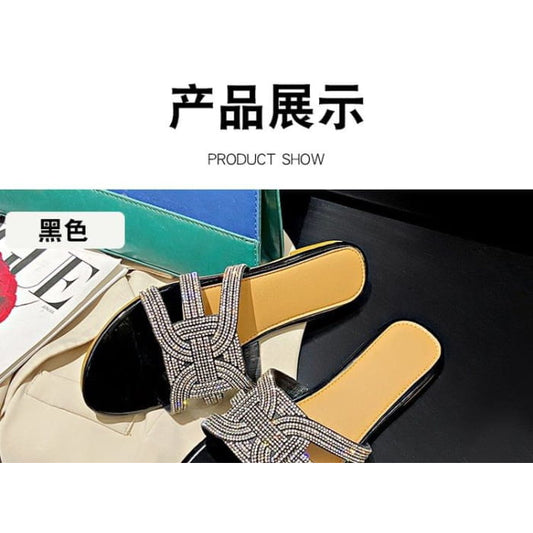 Rhinestone Sandals Slide Flat