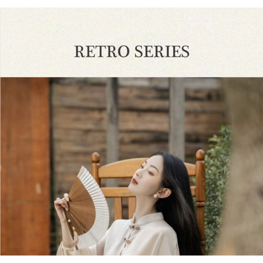 Qipao mi-long à manches courtes et fente florale / Pantalon large taille moyenne / Ensemble