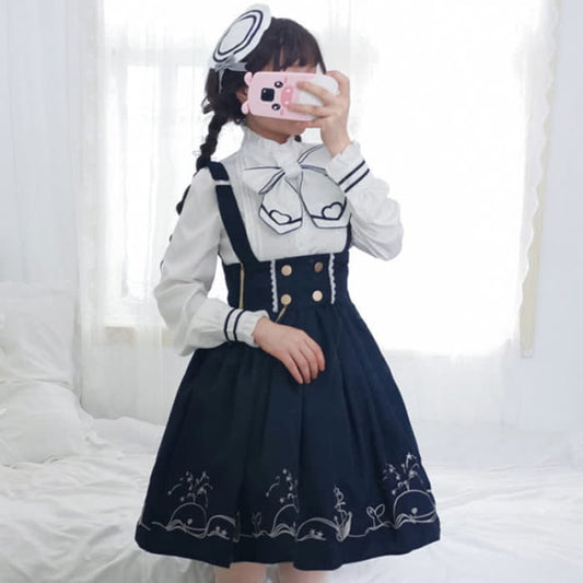 Chemise à col marin Jupe à bretelles à imprimé dauphin de dessin animé