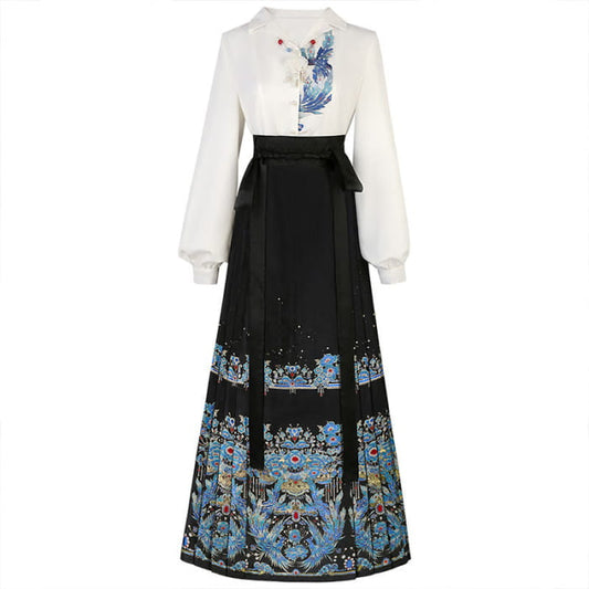 Chemise à boucle en jacquard Hanfu vintage avec jupe plissée