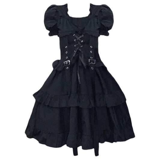 Robe à ceinture bandage à manches bouffantes rétro Lolita