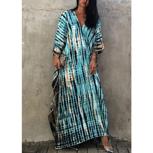 Robe de plage bohème verte à col en V et imprimé rayé pour femme, été VB1034