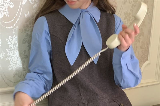 Puff-Sleeve Plain Shirt / Mini Dungaree Dress
