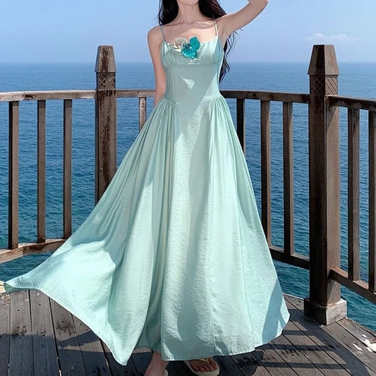 Floral Accent Strap Maxi Spaghetti Dress A-Line