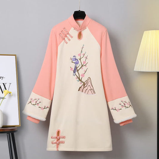 Robe cheongsam irrégulière à imprimé bambou vintage avec boucle