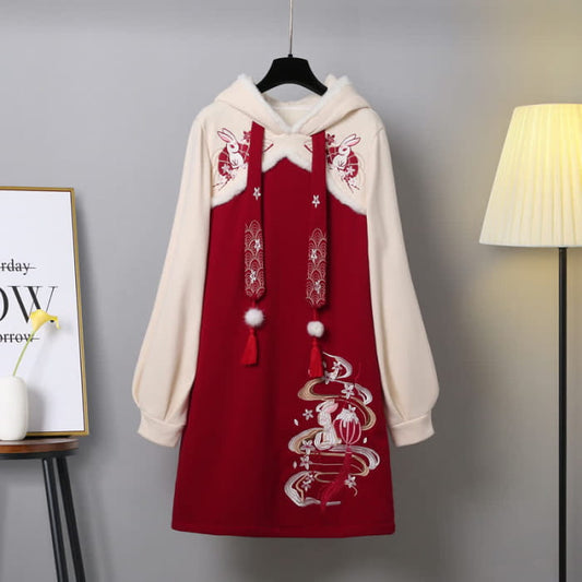 Robe sweat-shirt à capuche colorblock motif lapin rouge vintage