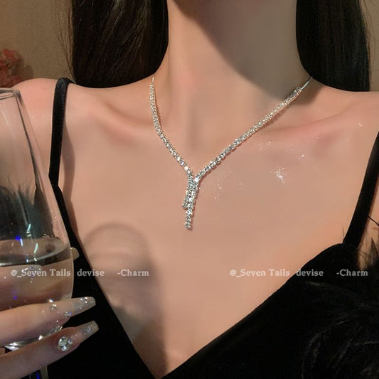 Feather Hair Clip / Faux Pearl Crawler Earring / Faux Crystal Alloy Lariat Necklace / Set