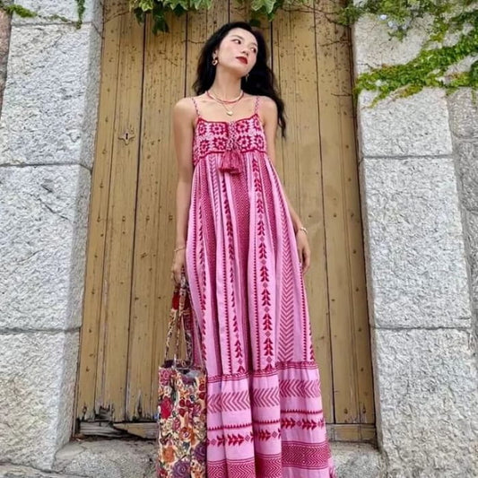 Robe d'été mi-longue plissée en accordéon à bretelles spaghetti