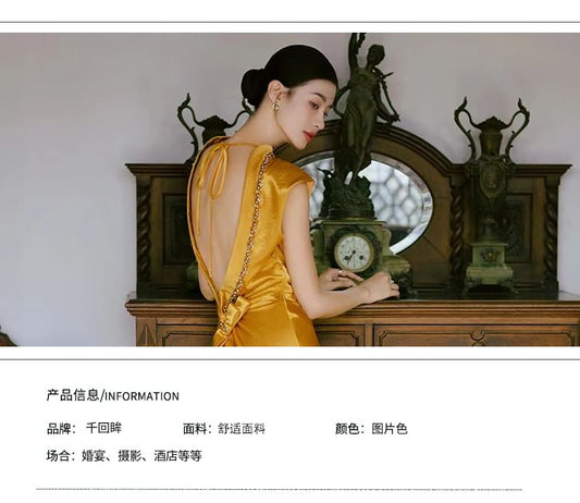 Cowl Gown Strap Spaghetti Plain Evening A-Line Neck