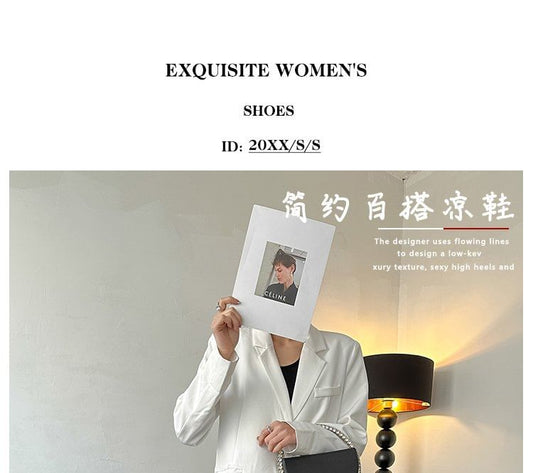Heel Toe Slingback Chunky Metal Sandals Accent Plain Loop