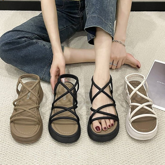 Sandales à bride arrière en similicuir à plateforme et brides croisées