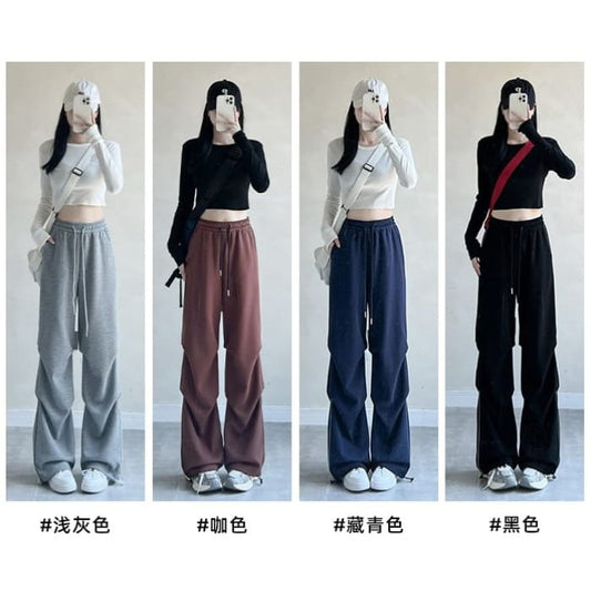 Pantalon de survêtement uni taille haute à jambe large et cordon de serrage en parachute