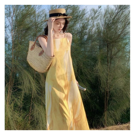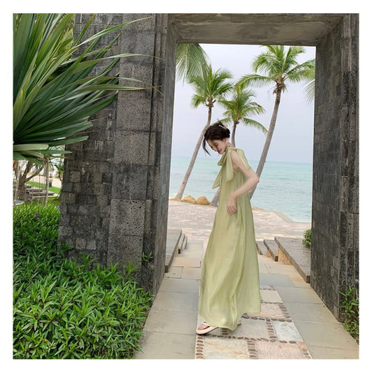 Robe fourreau longue unie à bretelles spaghetti et dos ouvert