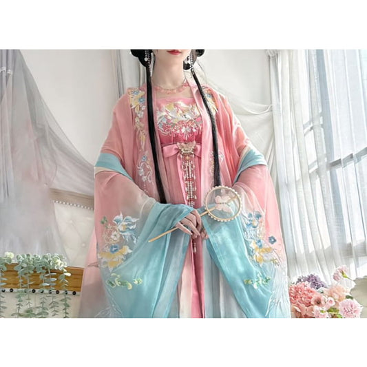 Robe longue Hanfu brodée de fleurs / Veste légère brodée / Ensemble