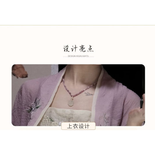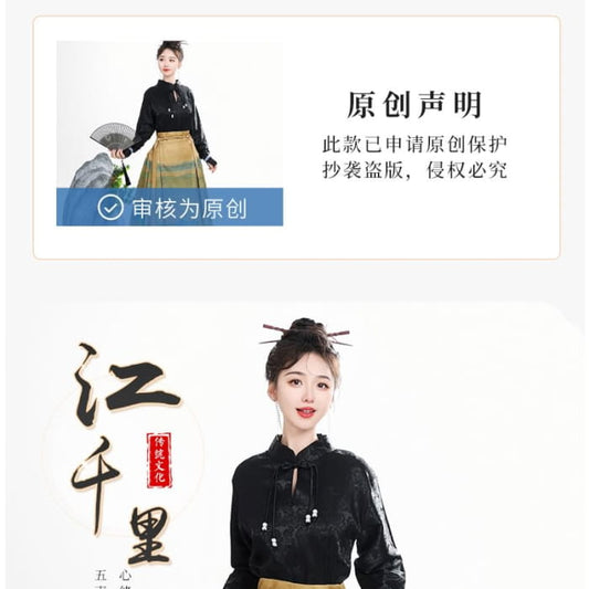 Haut Hanfu à col noué / Jupe longue imprimée taille mi-haute / Ensemble