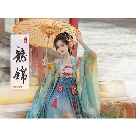 Chemisier Hanfu fleuri / Jupe longue / Ensemble