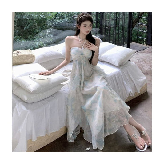 Robe d'été mi-longue asymétrique à fleurs et col licou