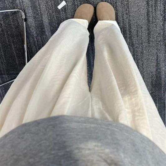 Pantalon large drapé à taille haute en velours avec taille élastique