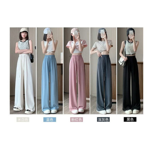 Pantalon de survêtement taille haute uni à cordon de serrage et jambe large