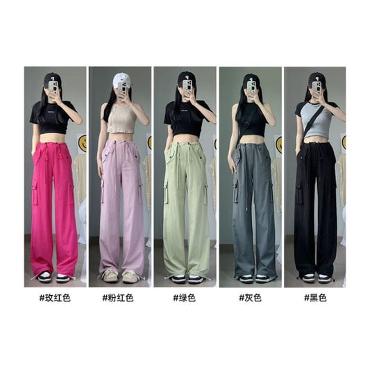 Pantalon de survêtement cargo uni à taille haute et jambe large
