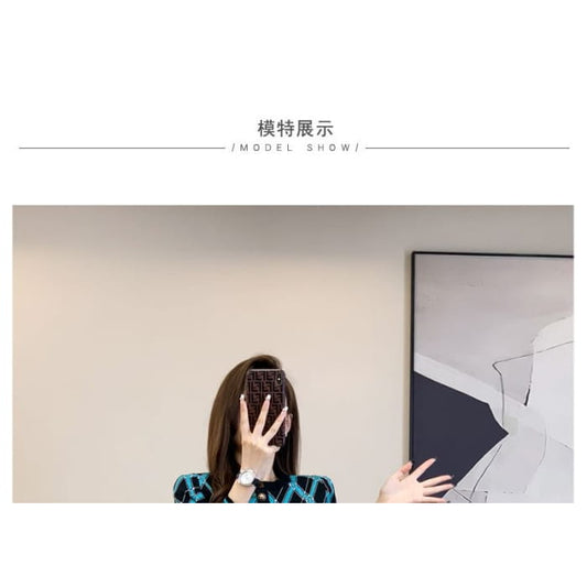 Ensemble : pull à motifs + mini-jupe droite en tricot taille haute