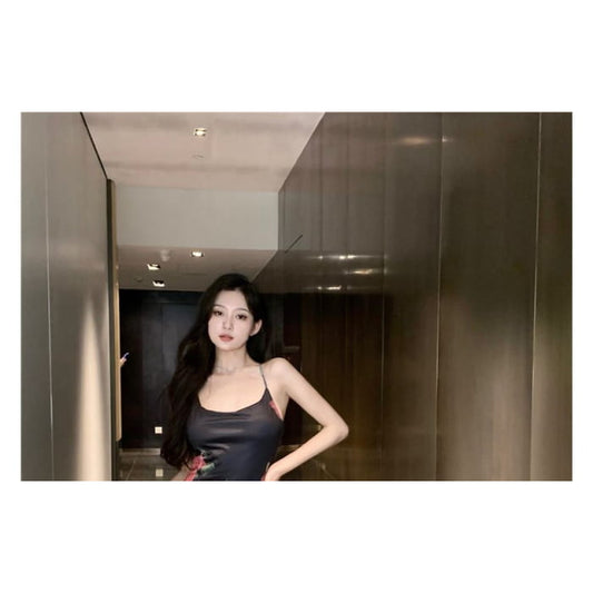 Robe fourreau longue en tricot à motifs à bretelles spaghetti