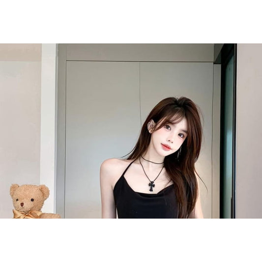 Ensemble : haut tube uni découpé + jupe crayon mi-longue taille haute