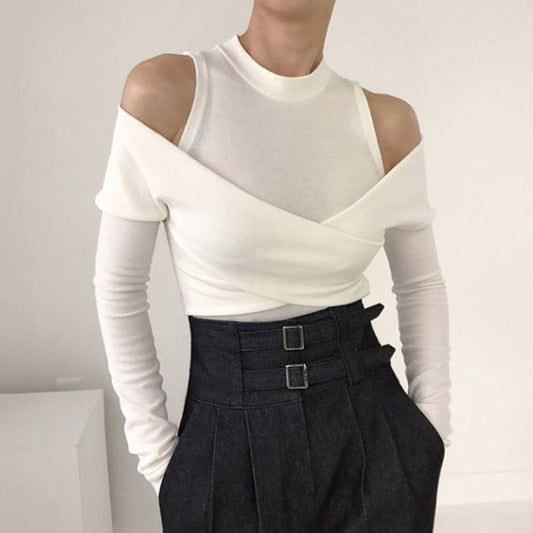 Mock Two-Piece Cold-Shoulder T-Shirt