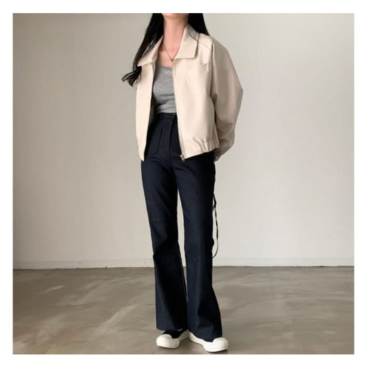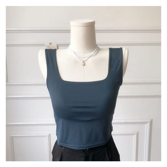 Ensemble : débardeur court uni à col ras du cou et froncé + maxi taille haute fendue