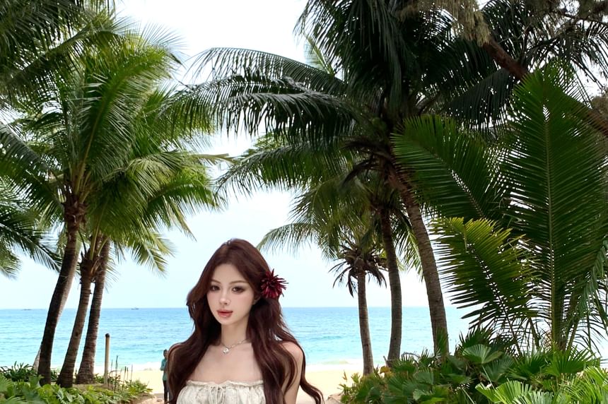 Camisole High Trim Drawstring Satin Fishtail Lace Top / Maxi Skirt Rise