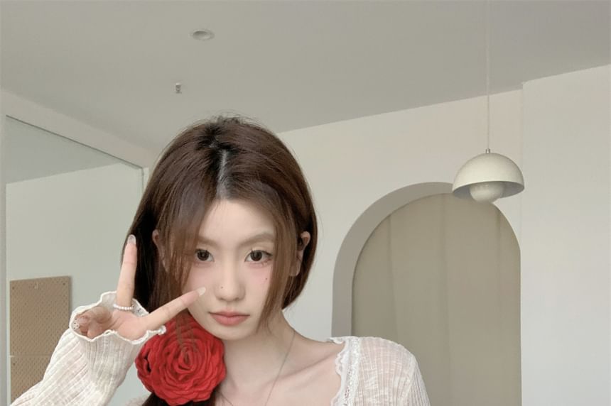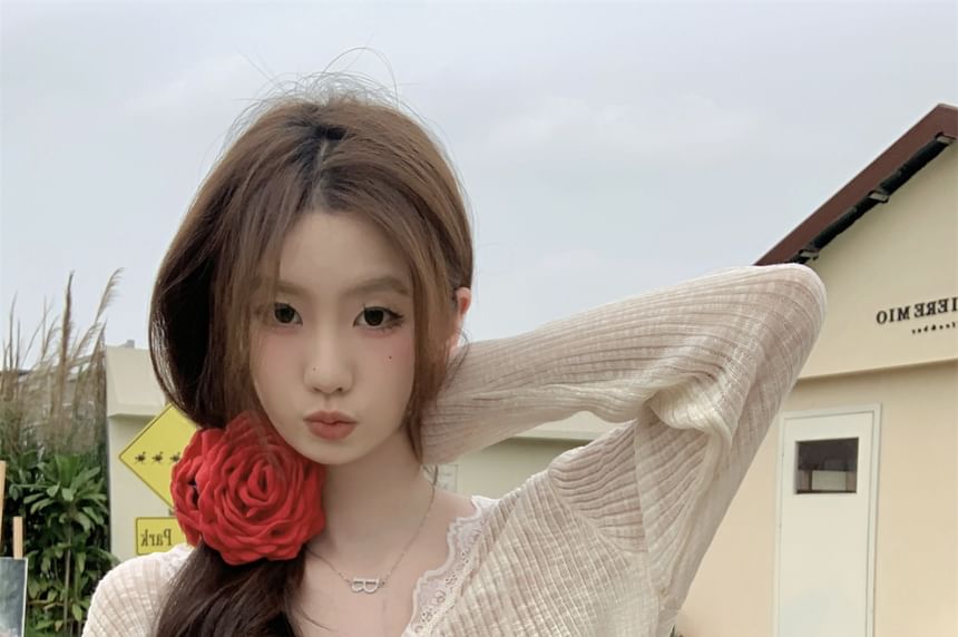 Cardigan Crop Lace Plain Sheer One-Buttoned Trim V-Neck