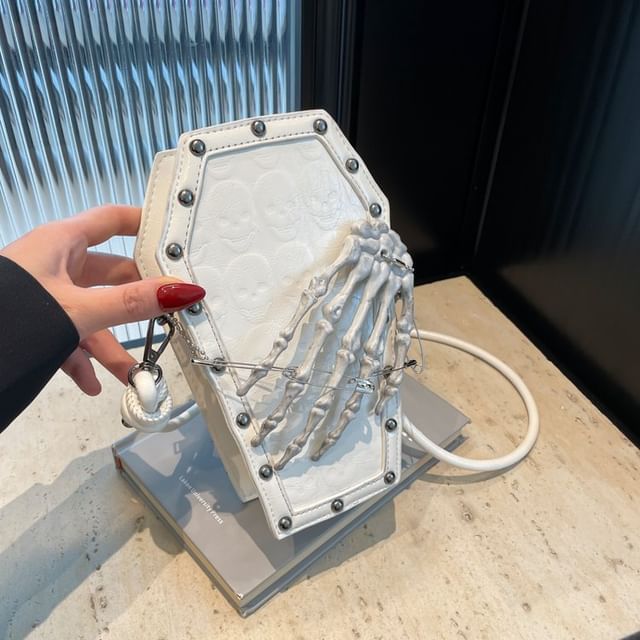 Coffin Shaped Studded Faux Leather Crossbody Bag