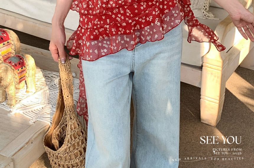 Floral Ruffle Trim Scrunchie Cami Set: Top + Asymmetrical