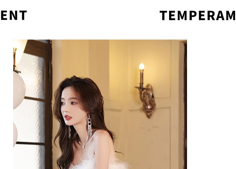 Floral Sequin Fringed Tiered Mesh Slit A-Line Evening Gown