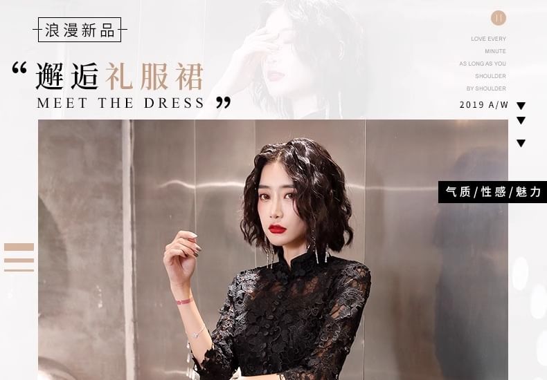 3/4-Sleeve Lace A-Line Evening Gown / Dress