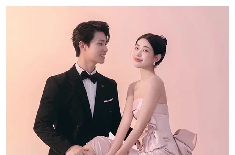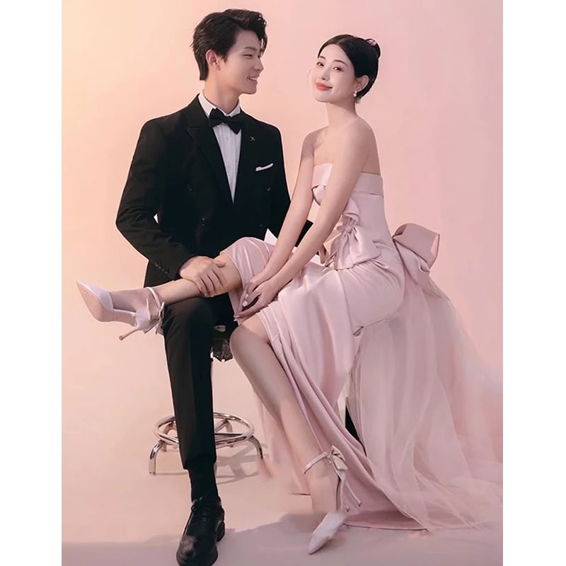 Gown Panel Bow Plain Tube Evening Trumpet Mesh
