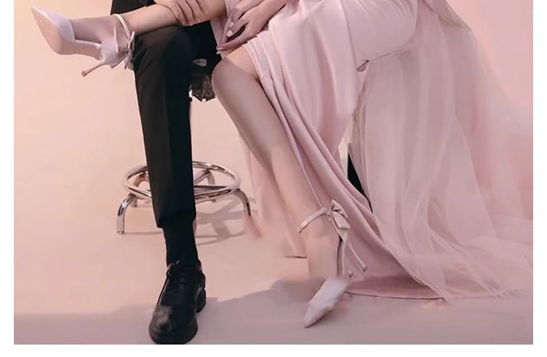 Plain Bow Panel Mesh Trumpet Tube Evening Gown