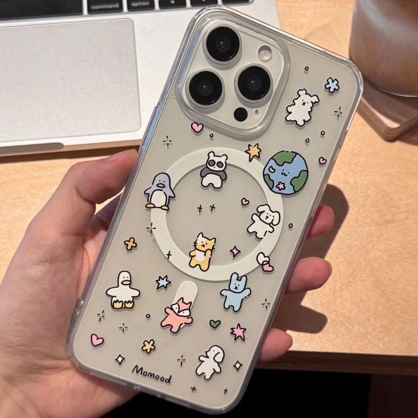 Holder Phone (Compatible with / Set Magnetic MagSafe) Animal Card Earth Case