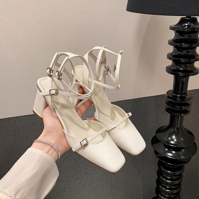 Chunky Heel Square Toe Plain Buckled Faux Leather High Top Sandals