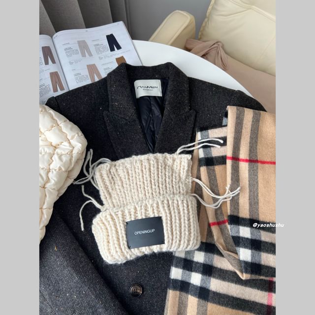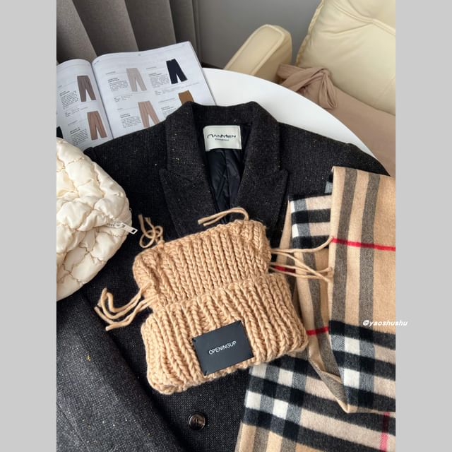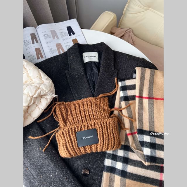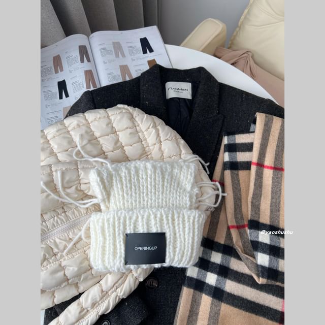 Lettering Ear Cat Applique Knit Beanie