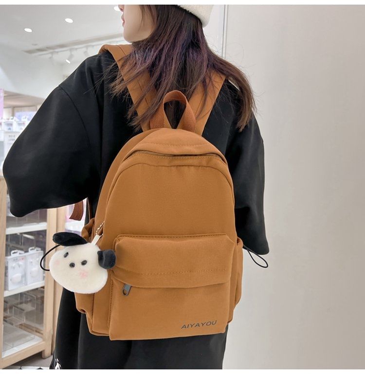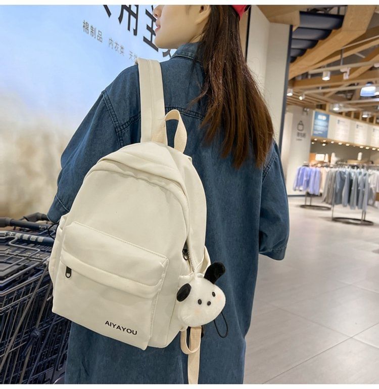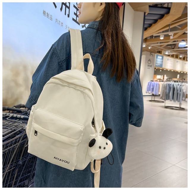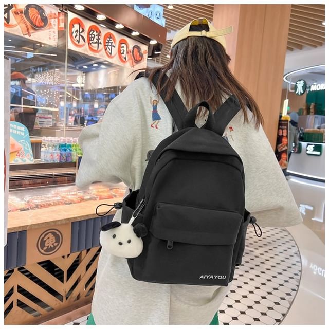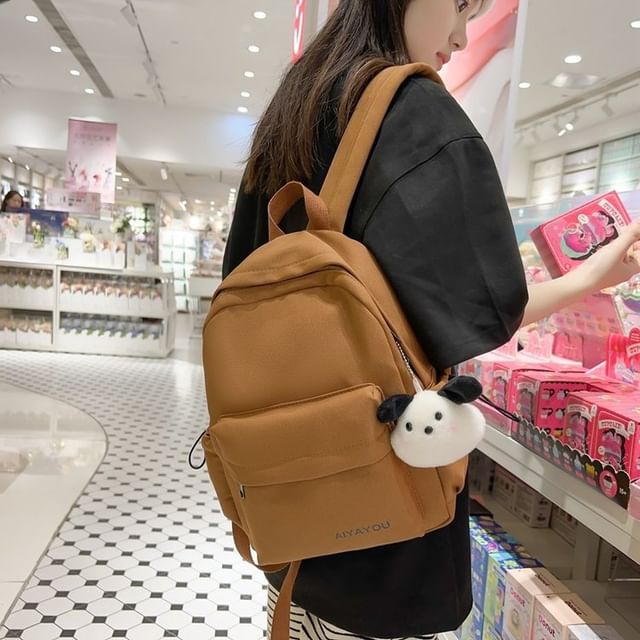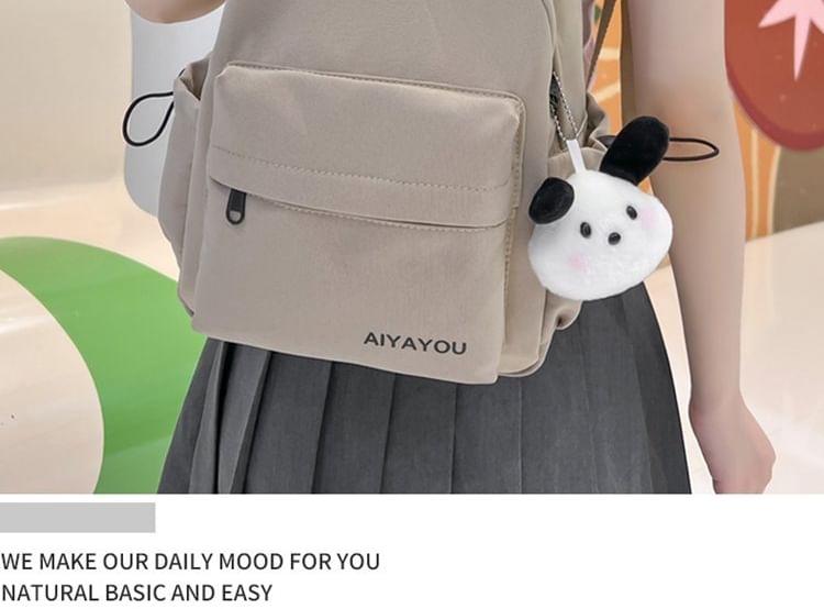 Lettering Print Nylon Laptop Backpack / Bag Charm / Set