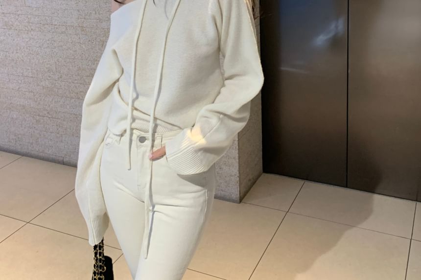 Long-Sleeve Cold Shoulder Plain Knit Top