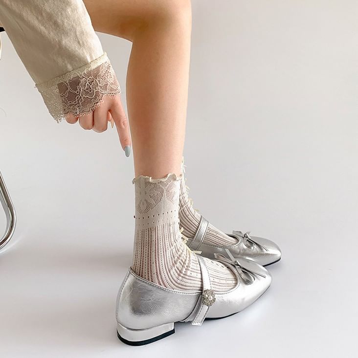 Low Bow Jane Toe Mary Faux Heel Pumps Leather Square
