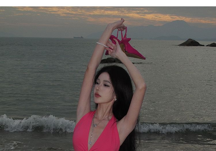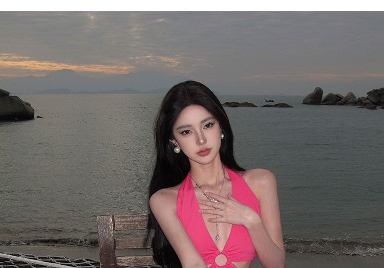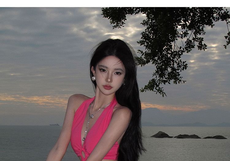 Midi Bodycon Plain Cutout Dress Halter Neck