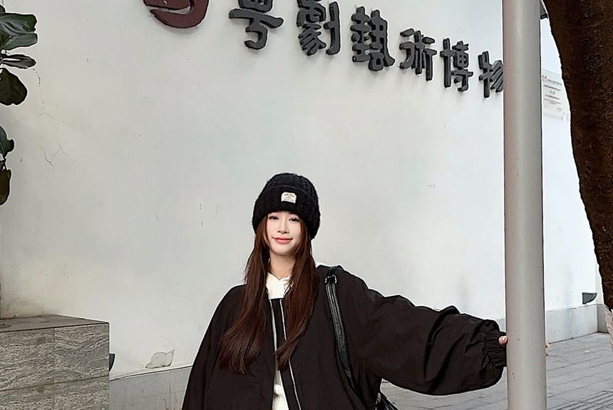 Plain Zip-Up Bomber Jacket / High Rise Pleated Maxi A-Line Skirt