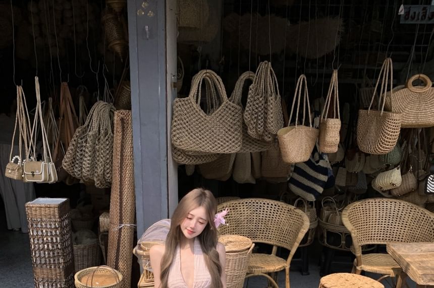 Rise Cropped V-Neck + A-Line Skirt Halter Plain Top Asymmetrical Maxi Set: Low