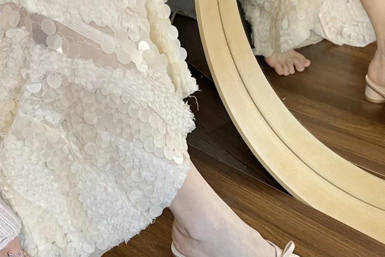 Chunky Heel Square Toe Plain Bow Accent Faux Leather Sandals