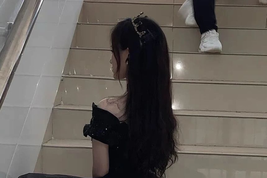 Short-Sleeve Off Shoulder Plain Sequin Mesh A-Line Evening Gown