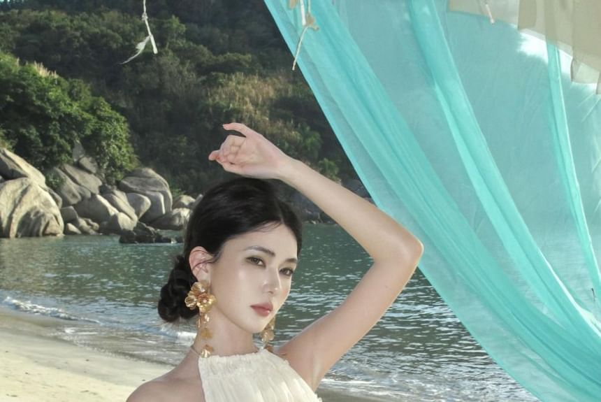 Set: Plain Crop Top Halter Rise Cami Maxi + A-Line Skirt High Neck