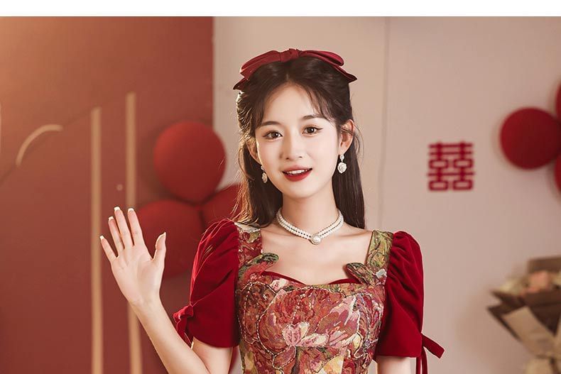 Short-Sleeve Floral Bow Mesh A-Line Evening Gown